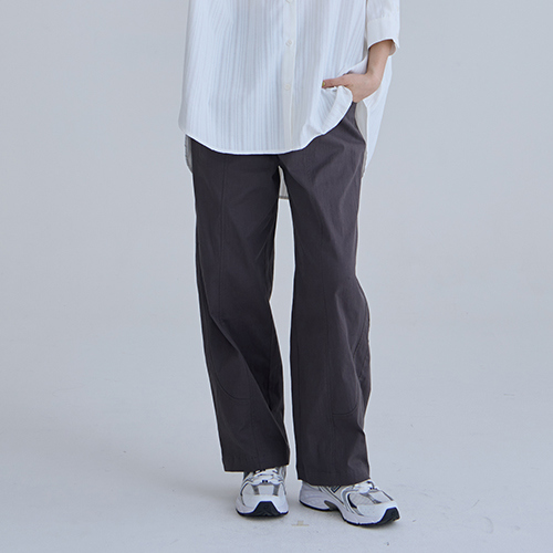 【E-WEAR】曲線集合剪裁線造型直筒褲 - 兩色