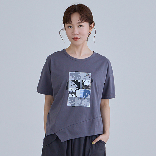【E-WEAR】葉景濾鏡印花下擺造型上衣 - 三色