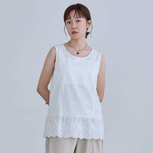 【e-collection】蕾絲裙擺造型純棉背心 - 兩色